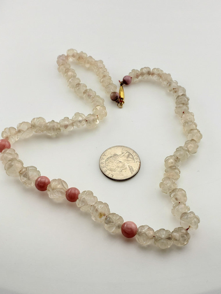 Antique Carved Rose Quartz Strand
